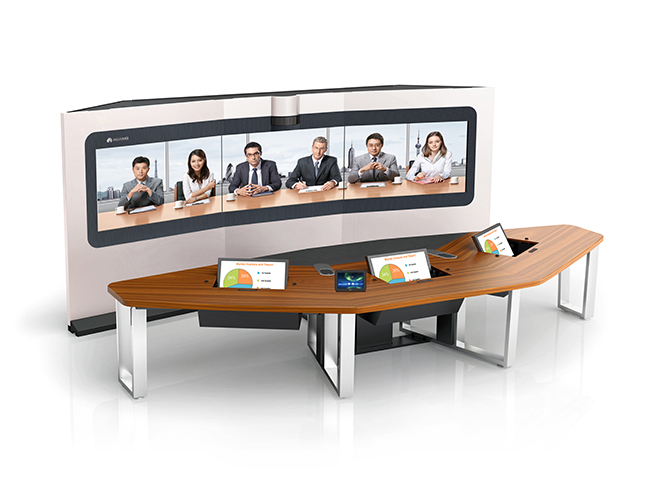 多功能会议桌是TP智真产品中重要的部件,其融合了专业高档会议桌、嵌入式麦克风、多功能插座、自动翻转屏、触摸屏,以及桌面按键,整个外观简洁大气