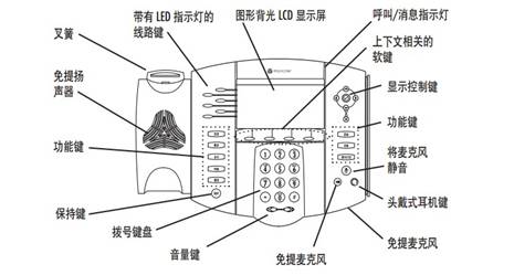 上下文关联软键,菜单导航键,线路键,音量控制键,静音按键,免提按键,耳麦按键,通话保持键 |